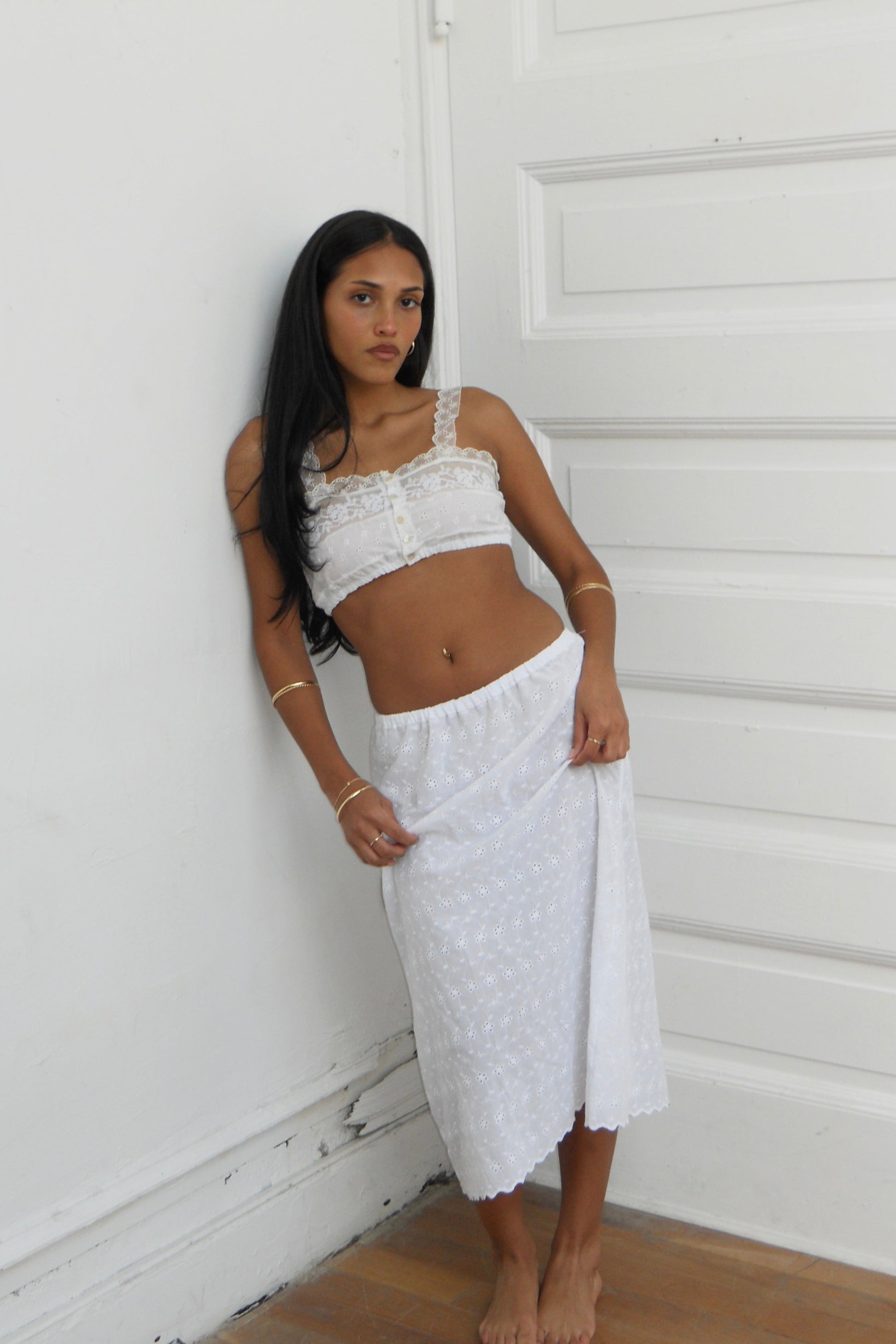 In Spanish, Divina means divine. We think that name perfectly characterizes this limited-edition set made from vintage eyelet cotton. A beautiful twist to our best-selling Divina Set, these pieces are truly divine.